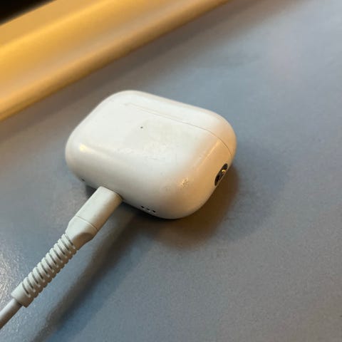 Apple AirPods Pro langattomat kuulokkeet valkoisena. Kuulokkeet sisältävät latauskotelon ja erilliset korvakappaleet. Soveltuvat langattomaan äänen kuunteluun.