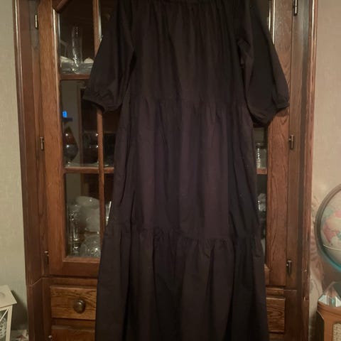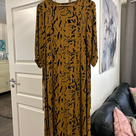 Nanso mekko. Kaunis malli. Kivat hihat, jossa hihansuissa kuminauhat. Puuvillaa, ei jousta. Sivuilla taskut. Takana niskassa nappikiinnitys.