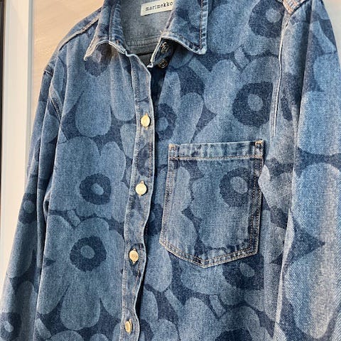 Ihana Marimekko Maridenim paita, pusakka ja menee farkku-jakkutakkina. Maridenim Vaihe Unikko farkkupaidan koko 36 ja väri harmaa. Vain muutaman kerran käytetty, kunnoltaan uusi. Ei käytön jälkiä, hajuton. Materiaali paksu puuvillaa ja tarkat lisätiedot Marimekon sivuilta. Nouto Vuores tai posti 8.90e. En käytä toridiiliä.