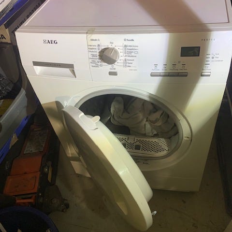 Vanha mutta hyvin vielä toimiva kuivausrumpu.