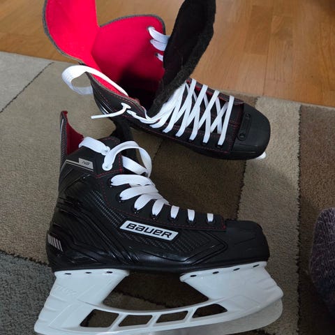 Kaksi kertaa koulun liikkatunnilla käytetyt luistimet, melkein uudet. UK koko 5, vastaa suunnilleen kokoa 38