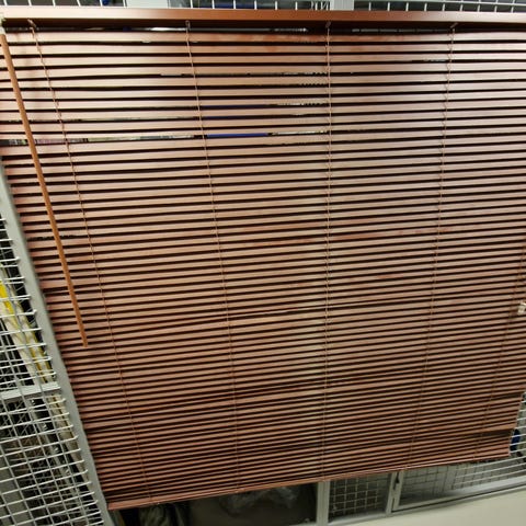 JYSK VO-1600110 puinen sälekaihdin ruskea. Valmistettu puusta, väri ruskea, soveltuu ikkunoiden peittämiseen ja valon säätelemiseen. Sälekaihdin, leveys noin 100 cm ja korkeus 150 cm (noin 69 sälettä). Yhden säleen korkeus on noin 2,4 cm.