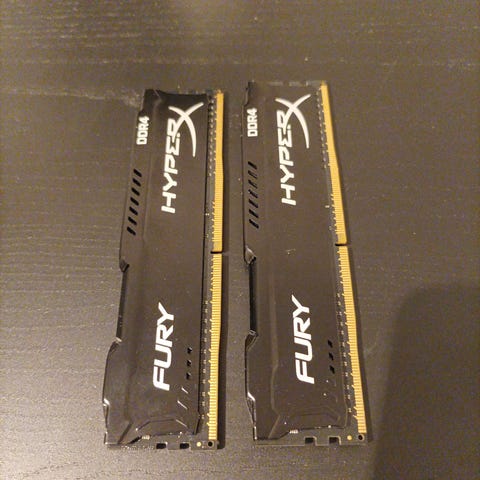 HyperX Fury DDR4 RAM-muistit, yhteensä 4 4GB kampaa eli 16GB yhteensä. 2400mhz