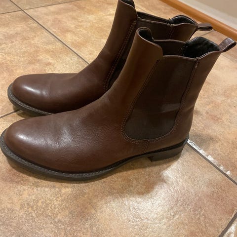 Siistit, vähän pidetyt nahkakengät. Enemmän kapea kuin leveä lesti. Koko 40.