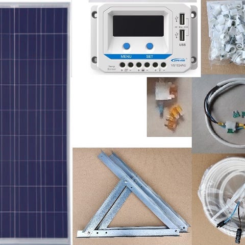 Keskikokoinen aurinkosähköpaketti mökkiin jossa halutaan esim. pitää kompressorijääkaappi päällä koko kesän.