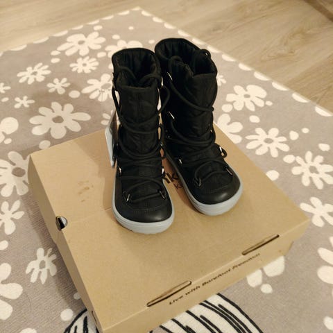 Myydään lähes uudet talvikengät, lapsen jalka ennätti kasvaa ennenkuin talvikelit saapui ja siksi kenkiä käytetty vain kaksi viikkoa. Vuori erittäin hyvä ja pohjat uudenveroiset. Sisämitta jälleenmyyjän ilmoittamana 15,9cm. Nouto Mellunmäki.