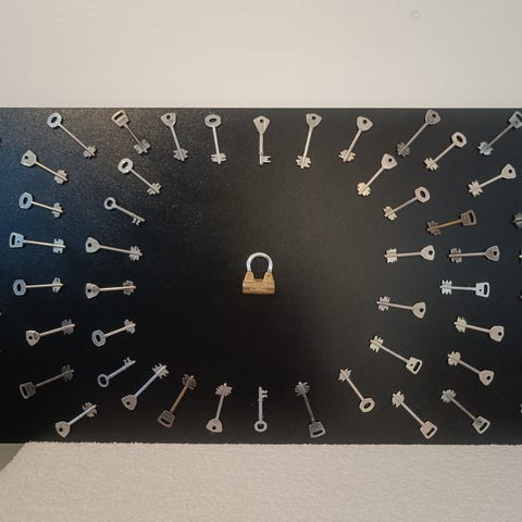 Teos kokoaa yhteen avaimia, jotka eivät kuulu samaan lukkoon. Ne edustavat valintoja, sattumia ja pieniä oivalluksia – hetkiä, joiden merkitys ymmärretään usein vasta jälkeenpäin. Yksi avain ei tee ihmettä, mutta yhdessä ne muodostavat mahdollisuuksien kartan.