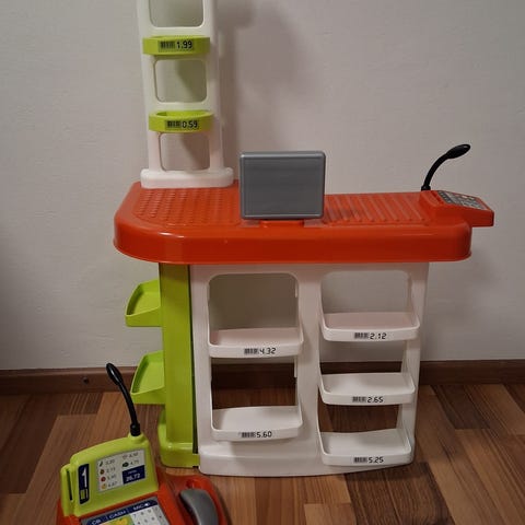 Myydään iso leikkikeittiö. Korkeus n. 87 cm. Keittiössä ääniä ja valoja. On myös jääpalakone, mikro, uuni, pyykinpesukone, tiskikone. Keittiö on vähän käytetty ja uuden näköinen mutta yksittäisissä keittiö tavaroissa näkyy käytönjälkiä. Keittiötavarat ovat puu materiaalia.
