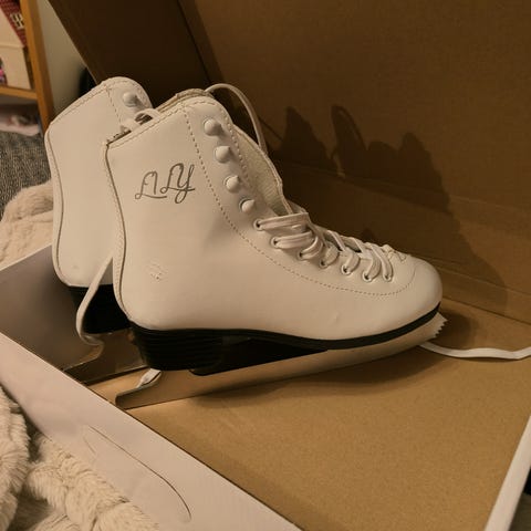 Myydään Ice Balett -taitoluistimet, valmistaja Botas. Koko 37, pohjallisen pituus noin 23,5 cm. Luistimet ovat käytetyt, ikään nähden siistissä kunnossa, normaaleja käytön jälkiä näkyy ja ne on esitetty kuvissa. Terät ovat valmistettu Englannissa (Sheffield steel). Mukana teräsuojat. Kuvat ovat osa kuvausta.