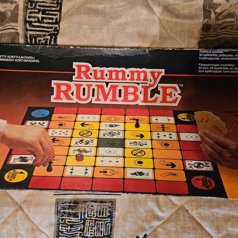 Tactic Rummy lautapeli. Sisältää 4 korttitelinettä, 104numerokorttia (toinen hertta 12 puuttuu, mutta 4 varakorttia, joihin voi itse tehdä korvaavan) 4 jokerikorttia. Metallinen säilytysrasia. Ikä 8+, 2-4 pelaajaa. Pelin idea on päästä eroon korteista. Ohjeet mukana usealla kielellä. Koko14,5x9,5cm