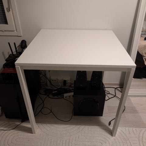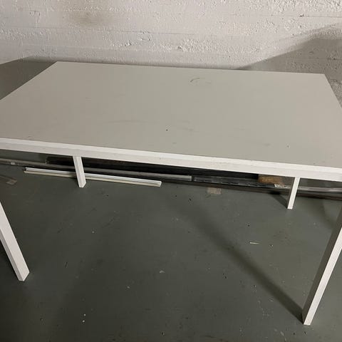 Jämäkkä ruokapöytä. 125cm pitkä 75 cm leveä 74cm korkea valkoinen teräs jaloilla.