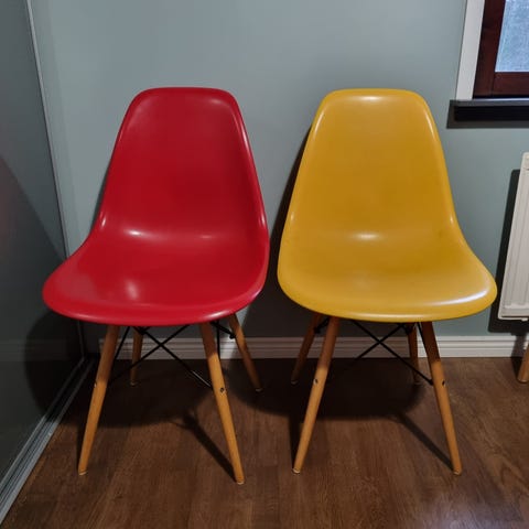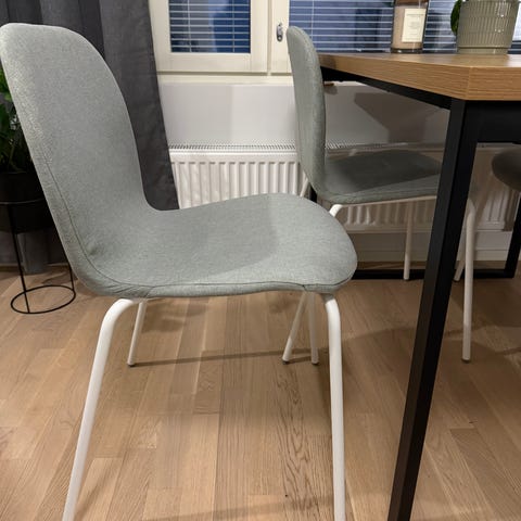 4kpl ruokailutuoleja uusien tilalta pois. Joitakin ruokatahroja mitä en ole yrittänyt siivota. Pesu ostajalle. Nouto Mankkaalta