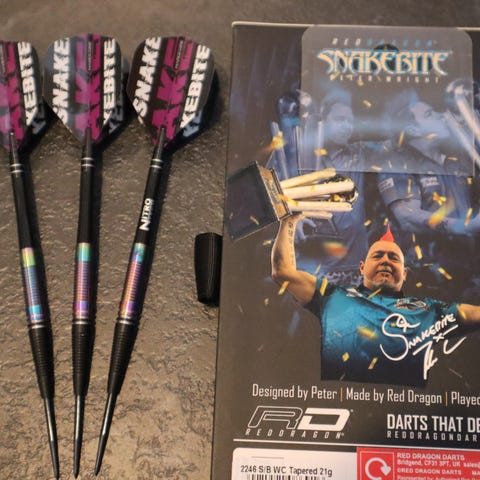 Myydään hyllystä pois 21g Anderson phase 6 darts tikat. Kaikki alkuperäiset tilpehöörit tallela pois lukien terät jotka on vaihdettu pidempiin teriin. Rungoissa maalit hieman kuluneet mutta muutoin hyvässä kunnossa.