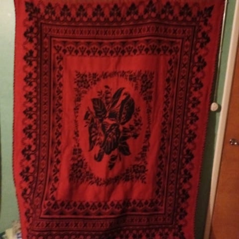 Hyväkuntoinen vanha ryijy.Nimeä/mallia en ole saanut selville.Normaali villan tuoksu,koko 190x92.Lähetän matkahuoltopakettina käärittynä 10.80e kuluilla jos rullana niin sillä tietysti eri hinta postikuluille.Noutaakkin saa ja kulkeutuu seinäjoen ja vaasan suuntaan omien menojen mukaan.