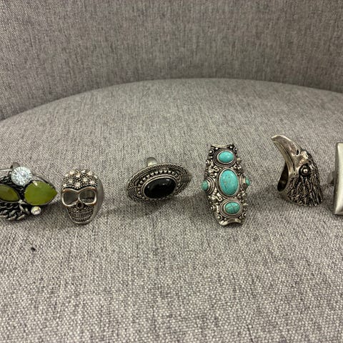 Myydään pikkutyttöjen sormussetti, sisältää erilaisia muovisia ja metallisia sormuksia. Suurin osa peräisin Tigerista. Hopeanvärinen rasia osin rikki. Voi käyttää esim synttäripussukoissa.