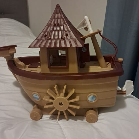 Muumilaiva ja kuvassa näkyvät tilpehöörit.