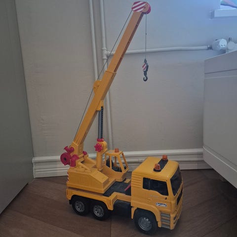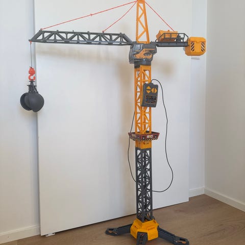 Dickie-toys nosturi lasten lelu, jossa on kauko-ohjain. Retro lelu, ohjaukset eteen taakse, sivuille renkaat kääntyy, nosturin nauha ylös ja alas. Pientä fiksausta tehty.