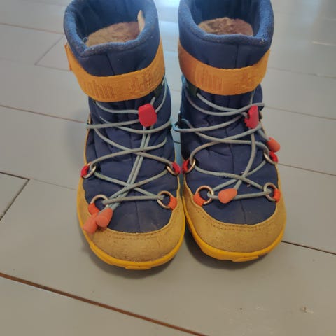 Affenzahnin ihanat villaiset talvisaappaat. Malli muistaakseni comfy walk. Hyvä kunto, tarrat pitävät vielä, ja menee varmasti ainakin yhdellä vielä kovemmissakin leikeissä. Käyttölikaa on, ja heijastinnauhassa vähän kulumaa.