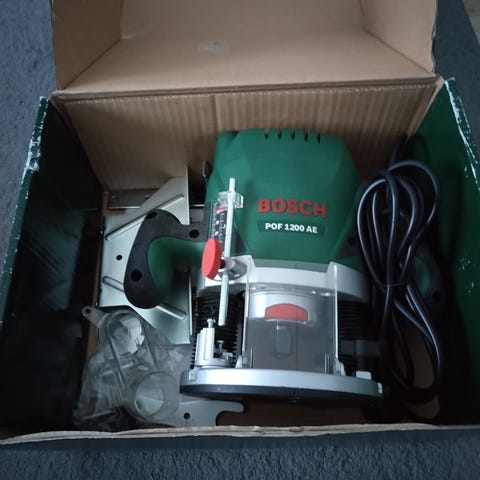 Bosch Professional GOF 1250 CE jyrsin. Työkalu on tarkoitettu puun ja muiden materiaalien jyrsimiseen. Mukana 6mm ja 8mm istukat, suuntaisohjain, kopiohylsyadapteri, kiintoavain