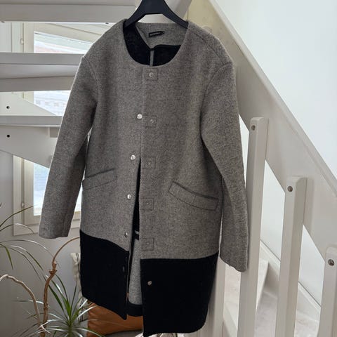 Marimekko villakangastakki ihastuttavassa siniharmaassa sävyssä. Koko S, malli Molla. Takki on valmistettu pehmeästä ja lämpimästä villamateriaalista, jossa on napitettava etuosan sulkeminen. Kaulus on tyylikäs, sivuilla piilotaskut. Soveltuu niin arkeen kuin juhlaan 🤍 Takki jäänyt käyttämättä minkä vuoksi myyntiin. Ovh. uutena 450€.