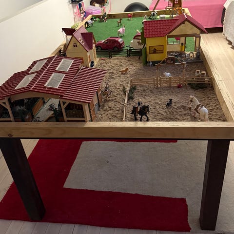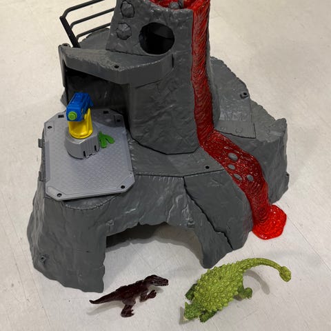 Schleich leikkivuori, muovinen lasten leikkilelu, jossa on vuorenmuotoinen rakenne ja punainen 'laavavirta'. Leikkivuori sisältää erilaisia tasoja ja portaita, jotka tarjoavat monipuolisia leikkimahdollisuuksia.