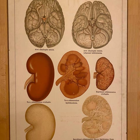Wanha opetustaulu imusuonistosta. Kuvan mukainen kunto. Koko 62 x 79 cm. Haku paikallaan!