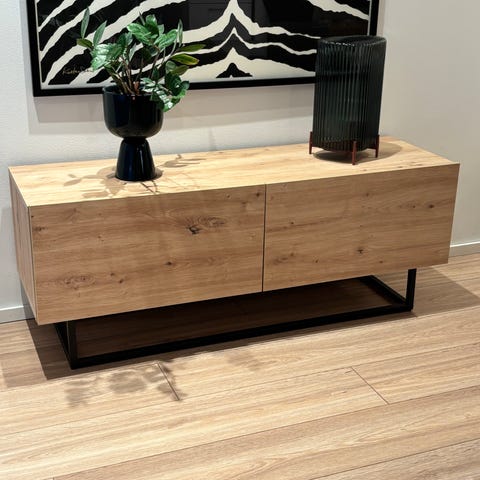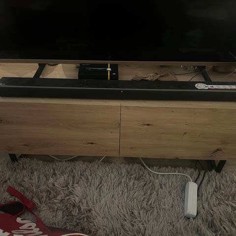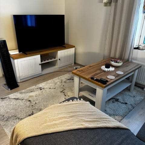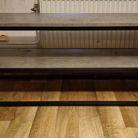 Hienokuntoinen hylly/tv-taso, hankittu Vepsäläisellä.