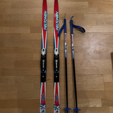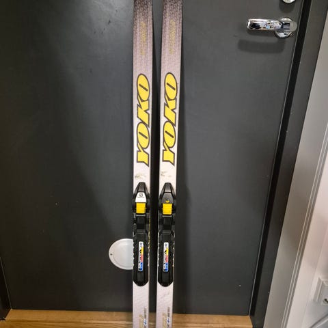 Yokon kenkiin kiinnitettävät lasten sukset 110cm ja sauvat (noin 75cm). Muutaman kerran käytetyt ja hyvässä kunnossa. Nouto Tuusula