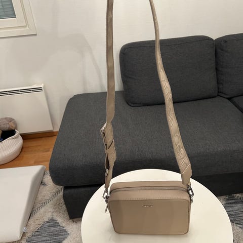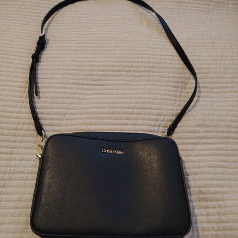 Myydään hyväkuntoinen Calvin Klein olkalaukku, valmistettu tekonahasta. Laukku on musta ja siinä on säädettävä olkahihna, jossa on Calvin Kleinin logo. Laukussa on kaksi vetoketjullista puolta sekä toisessa pieni tasku. Laukun koko on leveys noin 22cm, korkeus noin 12cm ja syvyys noin 7cm. Nouto tai ostajalle toimituskulut.