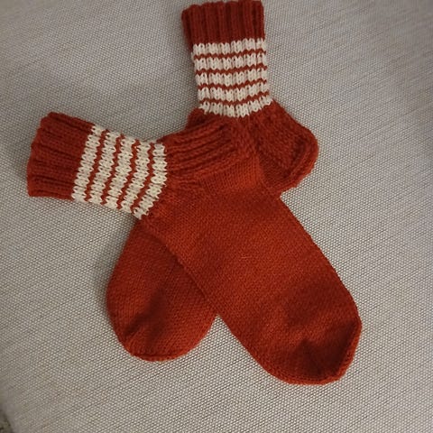 Seitsemän veljestä-langasta kudotut villasukat. Koko 40/41. Keskustassa.