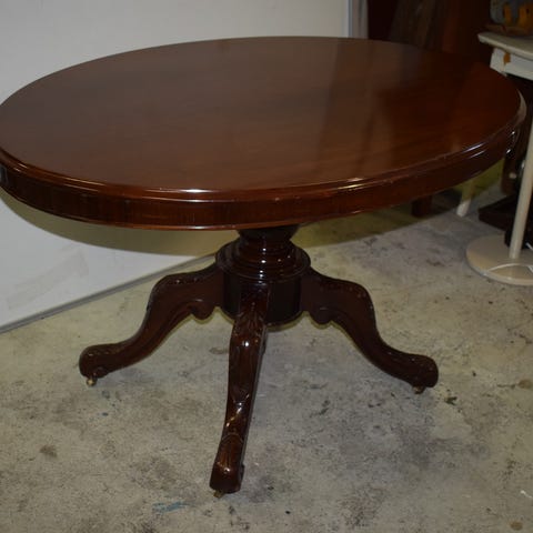 1800-luvun jälkipuoliskolta peräisin oleva koristeellinen, uusrenesanssi-henkinen sohva- ja kahvittelupöytä. Alkuperäiskuntoinen, siisti, tukeva ja ehjä. Pähkinäpuisen kansilevyn lakkapinnassa hiukan kulumaa, runsas koristelu ehjää ja kaikilta osin tallella. Täysin käyttövalmis kaunotar. Kannen mitat 96 x 60 cm, korkeus 78 cm, paino n. 12 kg. Kotiinkuljetus järjestyy samaan hintaan Tampereella ja naapurikunnissa, kauemmaksikin polttoainekuluja vastaan.