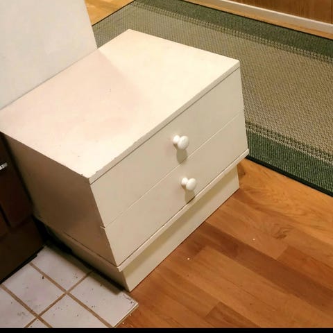 Annetaan ikean malm lipasto. Pientä vikaa, laatikoston tukipuut murtuneet, mutta toimii vielä käytössä. Nouto.