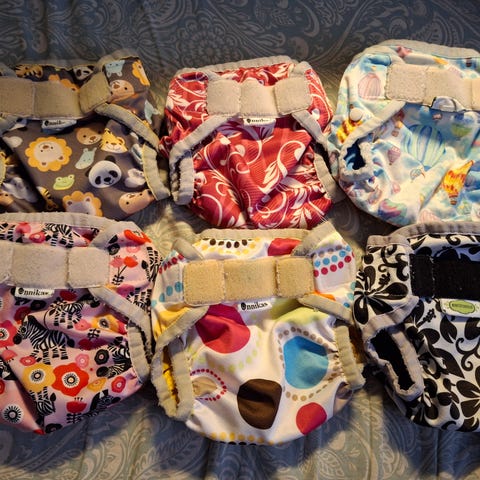 Uusia ja todella vähän käytettyjä kestovaippoja yhteensä 14kpl sekä täysin uusia imuja 10kpl.
