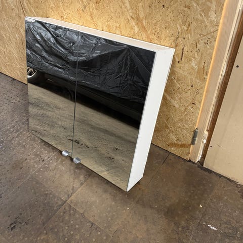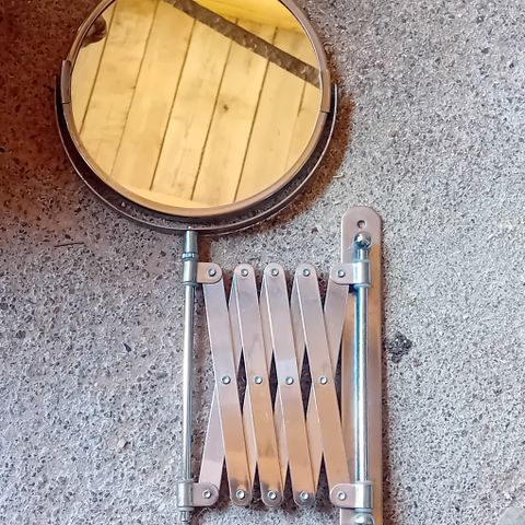 Pyöreä 2-puolinen peili, kokoamaton ja käyttämätön, toisella puolella normaalikoko ja toisella tuplasuurennos