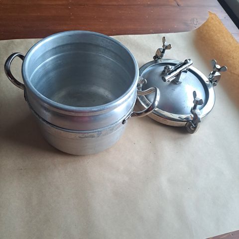Vanha saksalainen Record painekattila, valmistettu ruostumattomasta teräksestä. Mukana sisäosat ja käyttöohjeet. Tiiviste ehjä.