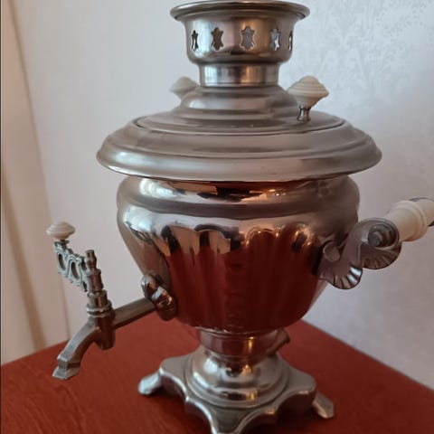 Koristeeksi 1974 Leningradista matkamuistoksi ostettu kaunis samovaari.