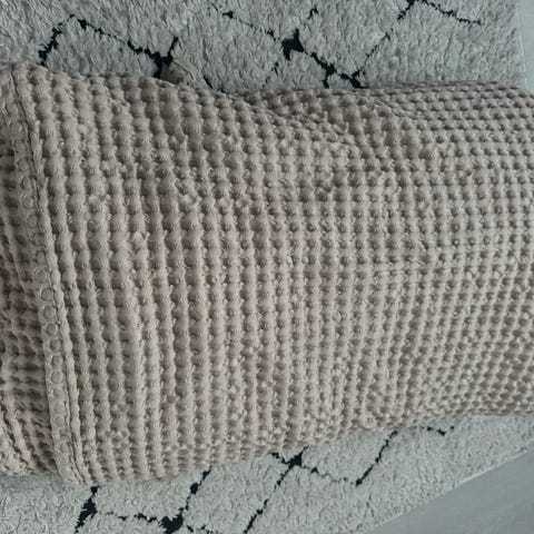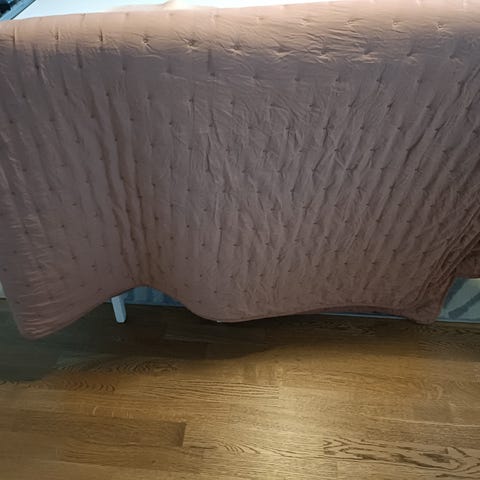 Päiväpeitto lapsen sänkyyn, toisella puolella punapalloinen Marimekon kangas ja toisella violetti tikkikangas. Vain nouto!