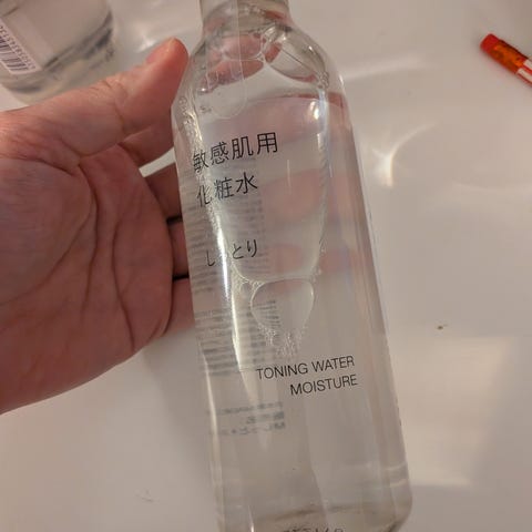 Muji Pre Lotion kasvovesi. Kirkas nestemäinen koostumus, tarkoitettu ihon kosteutukseen ja valmisteluun ennen muita ihonhoitotuotteita.