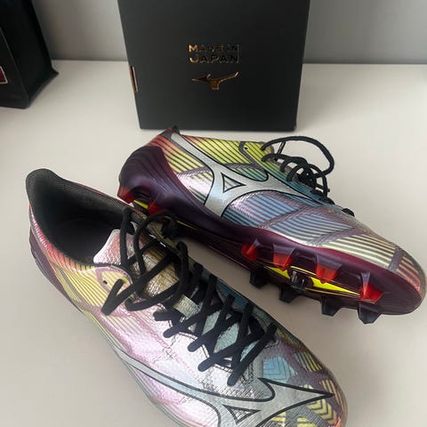 Myydään erittäin hyvässä kunnossa olevat Mizuno Alpha II Elite AG jalkapallokengät tekonurmelle. Koko 42 (27 cm)