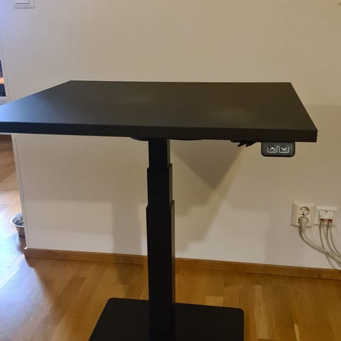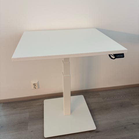 Linkki tuotetietoihin (sama pöytä mutta mustalla jalalla): https://www.verkkokauppa.com/fi/product/698015/Elfen-Ergodesk-Single-yksijalkainen-sahkopoyta-70-x-60-cm-sa?utm_source=productlink&utm_medium=orderemail&utm_campaign=order_created