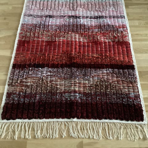 Metsässä palaa -ryijy. Koko 160cm x 105cm. Ollut seinällä, hieman pölyinen. Itse en uskalla pestä mutta ainakin tuulettu hetki.
