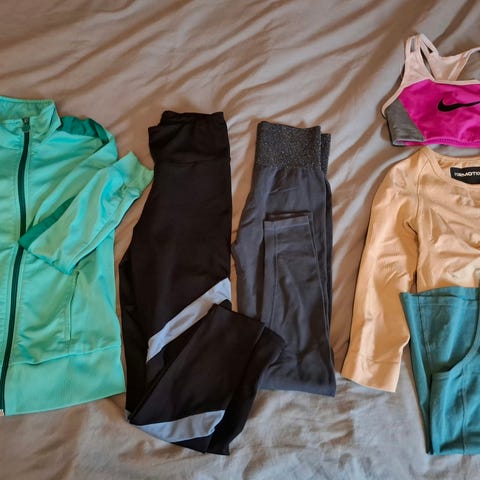 Hyvä kuntoisia urheiluvaatteita. Yhdet shortsit ja viisi paitaa.Koot ovat 152-160, käytössä ollut kaikki samaan aikaan.