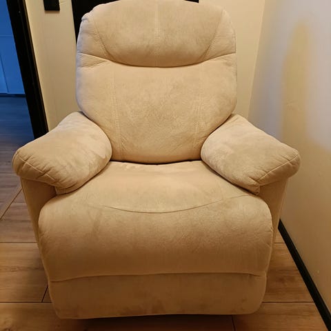 Harmaa kangasverhoilu, jossa on nahanomainen tuntu. Kankaan materiaali on 100 % polyesteriä. Sen martindale-arvo, eli hankauksenkesto on 20 000 ja valonkesto 4 (perusvaatimus, hyvä valonkesto). Vaalea tikkauslanka tuo kontrastia nojatuolin ulkonäköön.