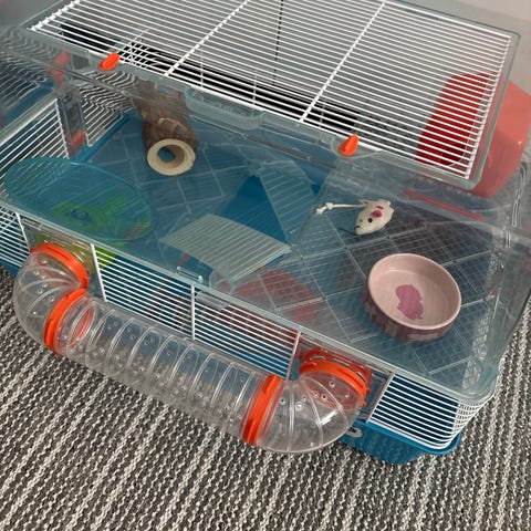 Häkki, kulkusillat (alimmainen ei mene kiinni mutta pysty paikoillaan, koska pohjalle tulee puru joka tukee, meillä ei ollut mitään ongelmaa pysymisen kanssa) puuportaat, jotka olivat hamsterin lempikulkureitti. Maha, vessa, kylpyastia, juoksupyörä ( selkäystävällinen lautasmalli) pystyssä olevat juoksupyörät varsinkin jos kohtuullisen pieni rasittaa hamsterin selkää. Pehmoystävä, jota on kiva käydä tuuppimassa 😍. Meillä myös toinen häkki myynnissä täysin vastaava toinen oli kotona ja toinen mökillä niin hamsteri ei stressannut erilaisista häkeistä ja häkkiä ei tarvinnut kuljettaa kodin ja mökin välillä. Sekä juomapullo.