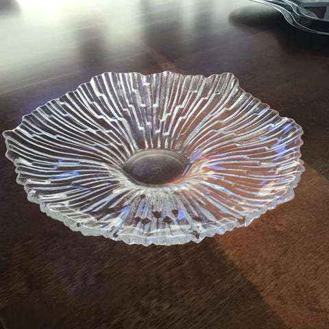 Myydään aito Humppila meripihkanvärinen lasivati. Halkaisija 33 cm. Paksu ja painava lasi, alkuperäinen aurinkologo osin tallella. Sopii tarjoiluun tai sisustukseen