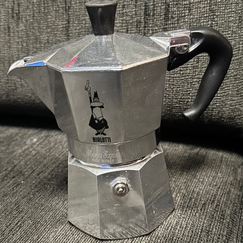 Uusi Bialetti Joyful Memories mutteripannu ja 2 mukia. 6 kupin keitin.