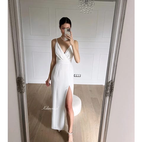 Muoti on paljon muuttunut häämekoissa vuodesta 1987. Mutta mietin, että joku saattaa tykätä eikä kaipaa nykyajan tyylejä. Olisin valmis luopumaan ompelijan tekemästä vuoden 1987 häämekosta. Puhvihihat ovat mulla alhaalla, kun mulla oli vesirokko ruvilla ja 2 päivää ennen häitä vielä 40 asteen kuume. Eli ei kannata hoitaa siskon lapsia 2 viikkoa ennen häitä, joilla on vesirokko. Otin kuvista kuvan, niin eivät niin selviä. Vyötärö 70 cm ja kai-kai mitta 45 cm. Olen 167 cm ja oli korkokengät häissä, korkeutta en muista. Yläosan edessä ja takana on vuori. Vyötä ei enään ole ja hanskat saa kaupan päälliseksi. Ei ole kellastunut, paitsi yläosan vuori jonkin verran. Myynnissä myös muualla, on kovasti tykätty.