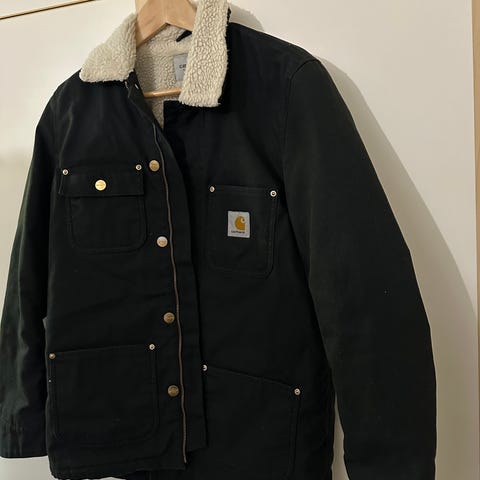 Authentic carhartt active jacket size xs i think fit also size S check the photos and measurements please check also my other carhartt in my ads thanks