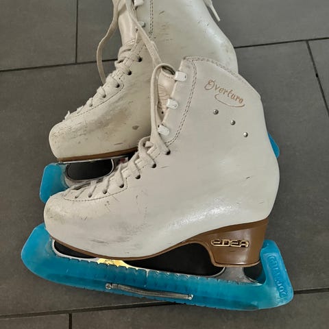 Myydään ulkoluistimiksi Edea Overture 205 Coronation ace 7.75" terillä. Kengissä ulkoisia käytönjälkiä runsaasti ja terissäkin hieman ruostetta, minkä teroituksella varmastikin saa pois. Teroitusvaraa vielä hyvin jäljellä. Hyvin luistelee vielä ulkojäillä. Mukaan saa kuvassa olevat pinkit suojat.