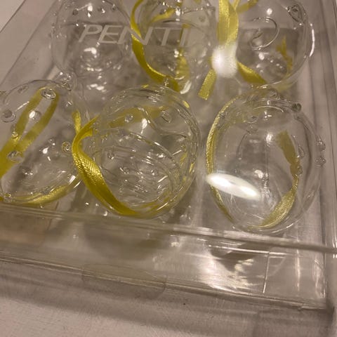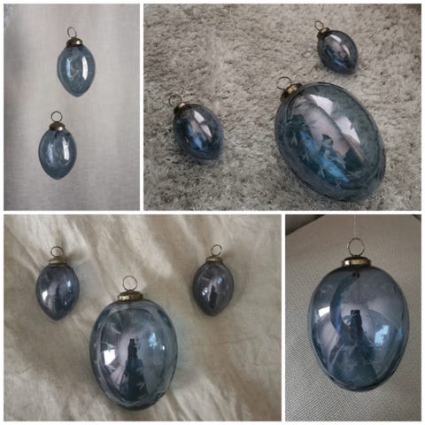 Myydään settinä pajunkissat 3kpl (tekokasvit, ei aitoja), pituus 61cm, Pentik jänöjussi 9x10x6cm, Pentik tuikkupidike kynttilälle sekä Pentik siniset lasimunat 3kpl. Huom! Pupun korvien tyvessä kuvassa näkyvä halkeama eli korvat voivat irrota postituksessa. Voi olla, että täytyy liimata tiukemmin päähän kiinni (eivät ole vielä irronneet). Pentikin siniset lasikoristeet 3kpl. Yksi isompi ja kaksi samaa kokoa. Ollut siiman kanssa verhotangossa ja roikkuneet koristeena. Kaikki täysin ehjiä. Lasikoristeet ostettu 20 vuotta sitten Pentikistä. Hinta yhteensä 20 euroa. Pääsiäismuna pääsiäinen Pentik vintage